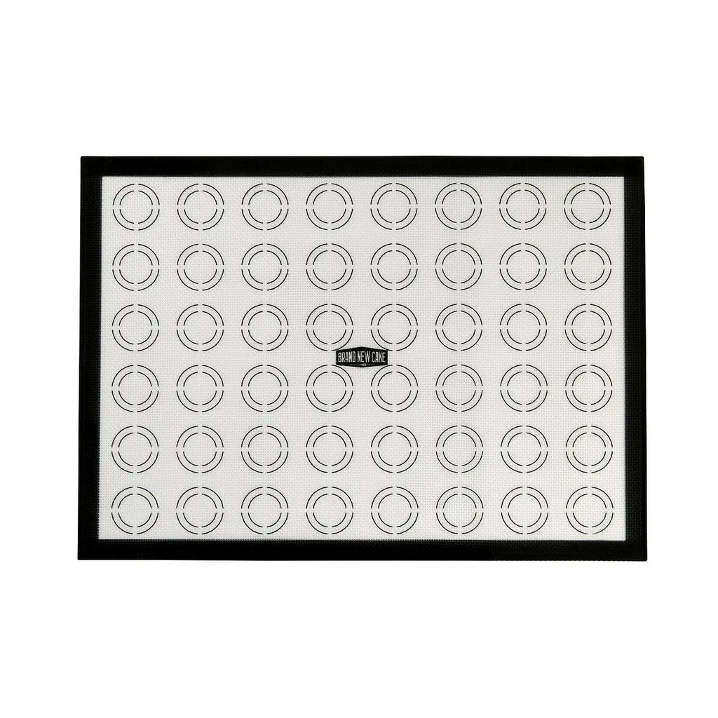Deze sterke mat is gemaakt van glasfiber dat aan beide kanten is voorzien van een siliconenlaag. De mat kan temperaturen van -40°C tot +230°C aan waardoor hij in de oven en in de vriezer gebruikt kan worden. De handige vlakverdeling vereenvoudigd het gelijkmatig opspuiten van macarons.